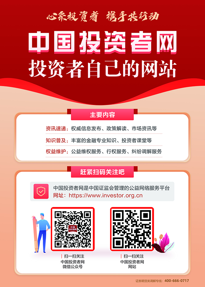 如果大家想了解最權(quán)威投資知識(shí)、如何維護(hù)投資權(quán)益、證監(jiān)會(huì)最新資訊等,歡迎大家積極關(guān)注“中國(guó)投資者網(wǎng)”公眾號(hào)和網(wǎng)站。