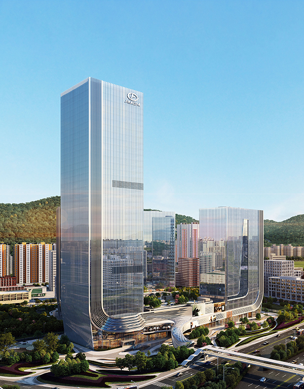 方大廣場位于深圳市南山區華僑城內,由四棟110米-200米高度不等的塔樓和其底部裙樓組成,總建筑面積達33萬㎡,一期項目幕墻面積約7萬㎡,幕墻類型主要是新型單元式玻璃幕墻、新型單元式格柵幕墻。建筑外立面采用方大制造的LOW-E中空雙銀玻璃幕墻,防輻射、高效隔熱。鋁型材裝飾條在安裝過程中選配合理的裝配方法及對裝配進行優化設計,美觀和安全兼具,并有效阻擋陽光直射、降低空調能源消耗。裙樓異型及弧形部分較多,施工過程的每道工序必須嚴格把控,考量每一個細節,特別是在異型部位測量定位時,軸線尺寸要嚴格控制。裙樓復雜如漩渦般的造型將四棟塔樓融為一體,不僅氣勢磅礴,律動的曲線也賦予建筑流動性,讓人、建筑、自然環境融為一體。