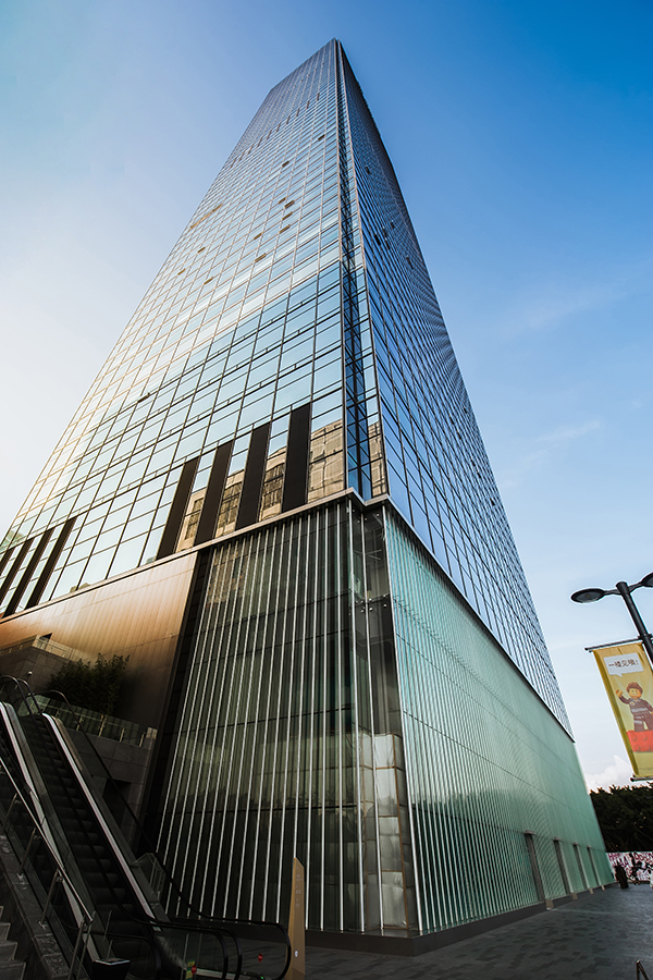 深業上城(南區)塔2位于深圳市福田區的中心,建筑高度300米,大廈的外形簡潔,通過內部空間和外立面高水準細節設計來展現建筑的優雅魅力。建筑的外立面為純凈的全超白玻璃幕墻,標準單元板寬度3米、高度4.5米,達到通常分格(1.5米)的兩倍,最大的單元板塊高度達8米,為用戶提供無遮擋視覺效果。為了降低風荷載,在塔樓四角做了內凹處理,L型的轉角板塊為1.5+3米。方大建科在施工過程中,對超高單元板塊垂直運輸、安裝等難點認真分析并給出了最優的施工方案,通過生產、施工環節的質量控制實現了玻璃及板塊平整度的極致效果。項目完成后,建筑水平與垂直線條勾勒出秩序均衡美,簡練、寧靜外立面體現人與自然和諧融合。