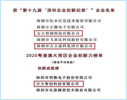 方大集團子公司榮膺“深圳企業(yè)創(chuàng)新記錄”、“2020粵港澳大灣區(qū)企業(yè)創(chuàng)新力榜單”多項榮譽